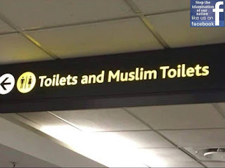 For one thing, they are supposed to squat over a hole rather than sit on a seat, also they are not supposed to face Mecca, or have their bottoms facing that way, so they need to be orientated at an oblique angle. And they are supposed to use water to wash the area involved after, for example with a hose, rather than use toilet paper, and use only their left hand.