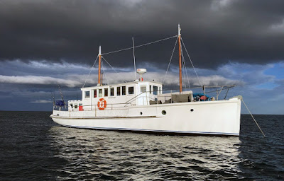 Made of Kauri carvel construction, powered by 98 hp Gardner diesel delivering 7-9 knots, 13 metres long, beam of 4 metres and draught 1.7 metres.